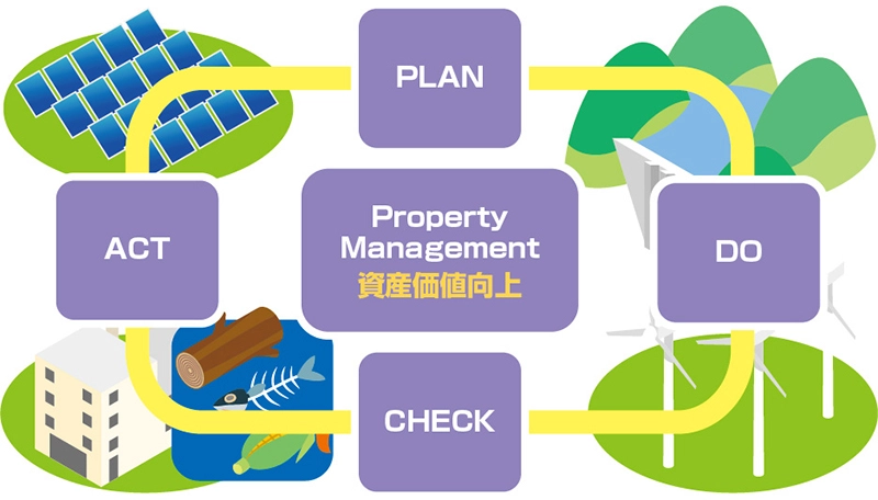 マネジメント力を強化し、単なる維持管理の領域から、資産価値向上における仕組みづくりを構築。 複数のアセットでの全体管理を進め、資産効率向上を目的に安定稼働、安定収入を運営します。